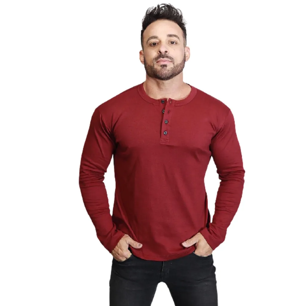 CAMISETA HENLEY J SILVER SLIM FIT MANGA LONGA 4 BOTÕES