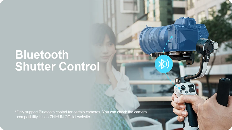 *Suporta apenas controle Bluetooth para certas câmeras.Você pode verificar a lista de compatibilidade de câmeras no site oficial da ZHIYUN.