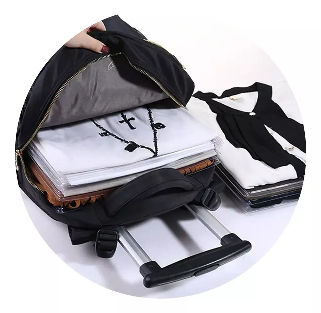 - Se encaixa perfeitamente em sua mala de viagem, gaveta, estante, armário, para manter suas roupas organizadas e sem amassar.